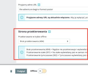 Jak mówi podtytuł, przekierowania 301, do kategorii bądź produktu, który ma być alternatywą, powinniśmy użyć wtedy, gdy mamy pewność, że dany produkt nie wraca do naszego katalogu. Wykonując przekierowanie permanentne (301), mówimy wyszukiwarce „ten adres jest już nieaktualny, podążaj do adresu X”, gdzie X to produkt, bądź kategoria, którą wybierzesz.